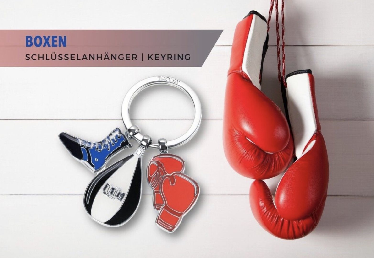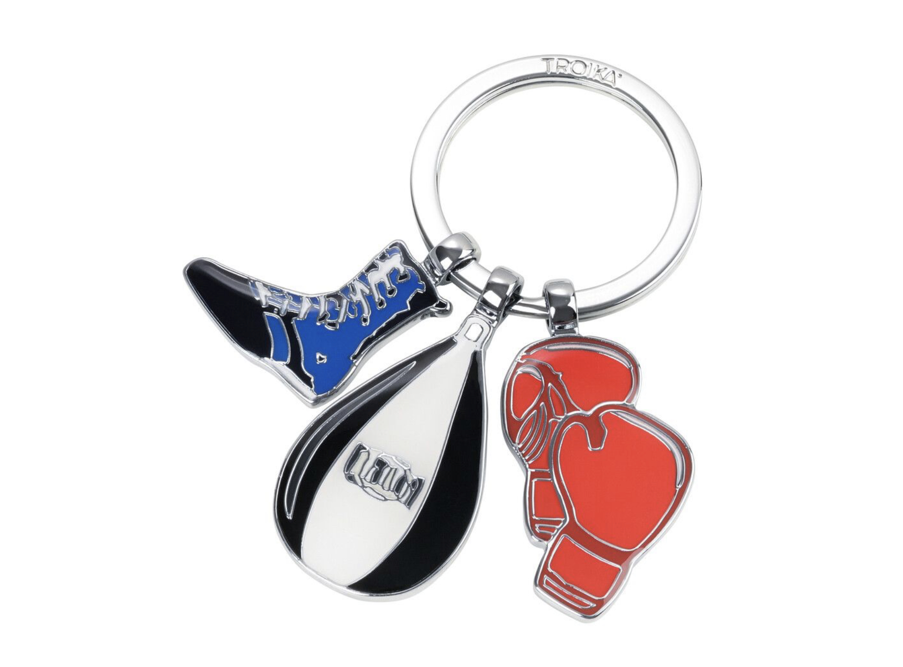 Σάκοι του μποξ, μπότες και γάντια περιμένουν τα κλειδιά σας πάνω και μέσα στο ρινγκ. Για μια από τις πιο εντυπωσιακές παραστάσεις από τότε που κατασκευάστηκαν τα μπρελόκ. Μπρελόκ με μπλε, κόκκινο και μαύρο σμάλτο, γυαλιστερό μπρελόκ από χρώμιο.