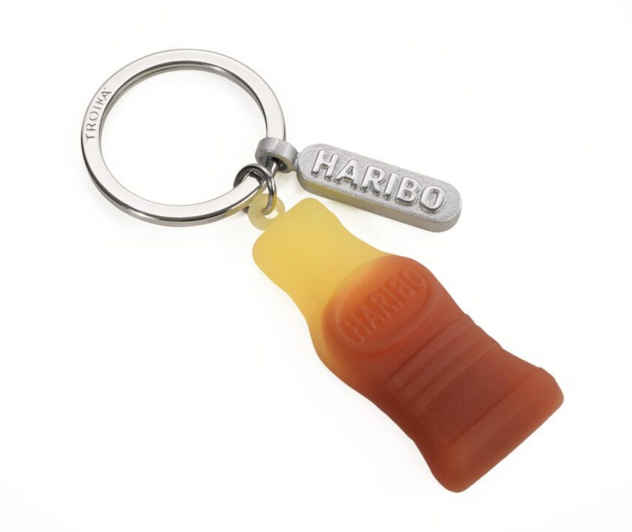 Το γνωστό μπουκάλι κόλα για μάσημα, τώρα ως μπρελόκ υψηλής ποιότητας. Με ανάγλυφα γράμματα HARIBO στο μπρελόκ.
