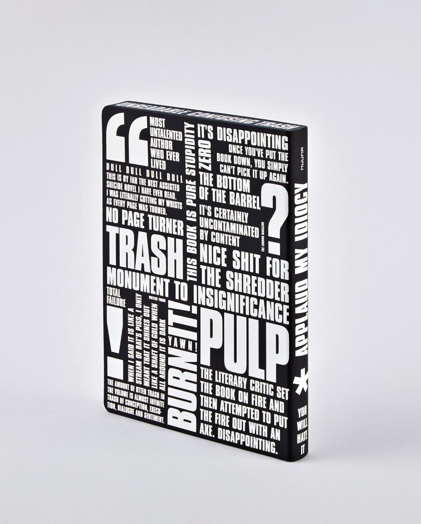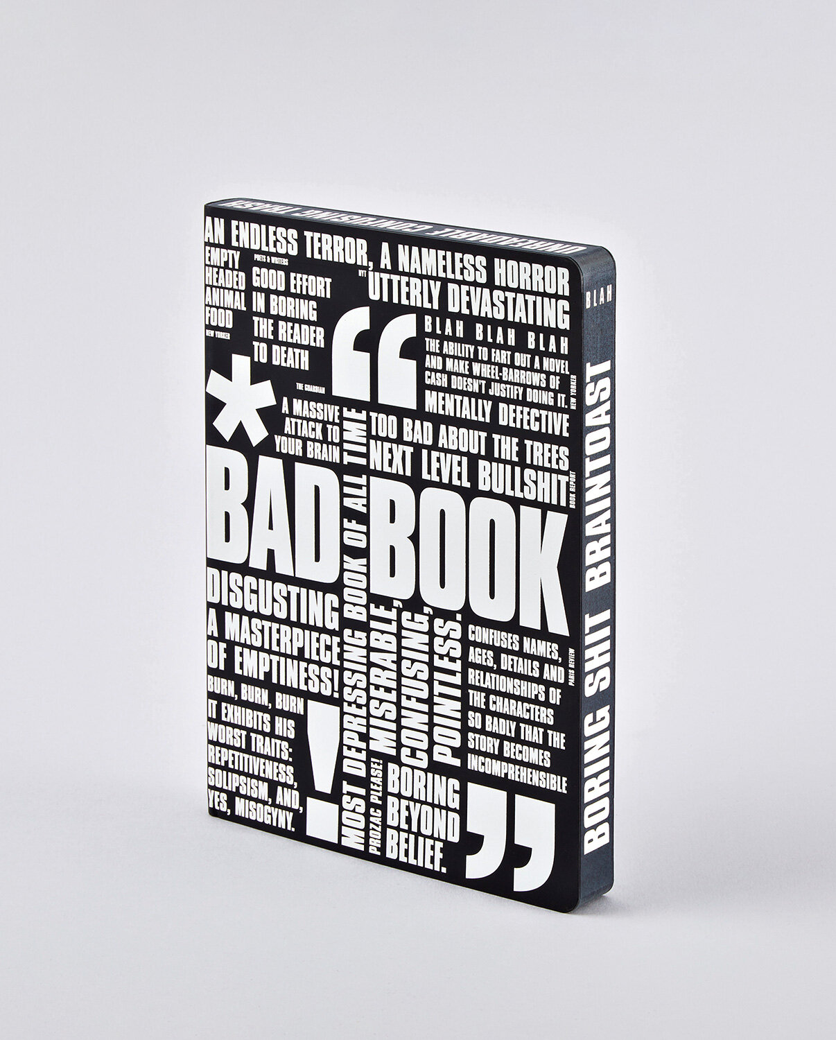 Κακό το να είσαι καλός. Το εξώφυλλο περιέχει τη χειρότερη μορφή κριτικής για να ελευθερώσετε το στυλό σας και να απελευθερώσετε τις συγγραφικές σας αναστολές. Δείχνει επίσης την αίσθηση της αυτοειρωνείας σας, που κάνει τους ανθρώπους να σας συμπαθήσουν ακόμη περισσότερο. Το σημειωματάριο είναι κατασκευασμένο από μαύρο ματ ανακυκλωμένο δέρμα με λευκή μεταξοτυπία – καθαρά λόγια, καθαρός σχεδιασμός.
