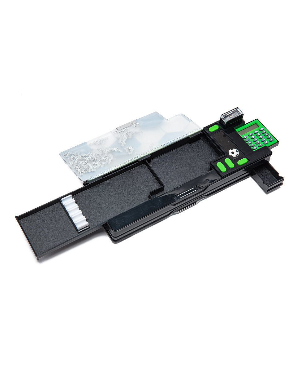 Η ρετρό κασετίνα αποτελεί ένα μυστήριο προς εξερεύνηση… Τα παιδιά πατούν τα κουμπιά και ανακαλύπτουν το κομπιουτεράκι, μυστικές θήκες, μία ξύστρα και πολλά άλλα.