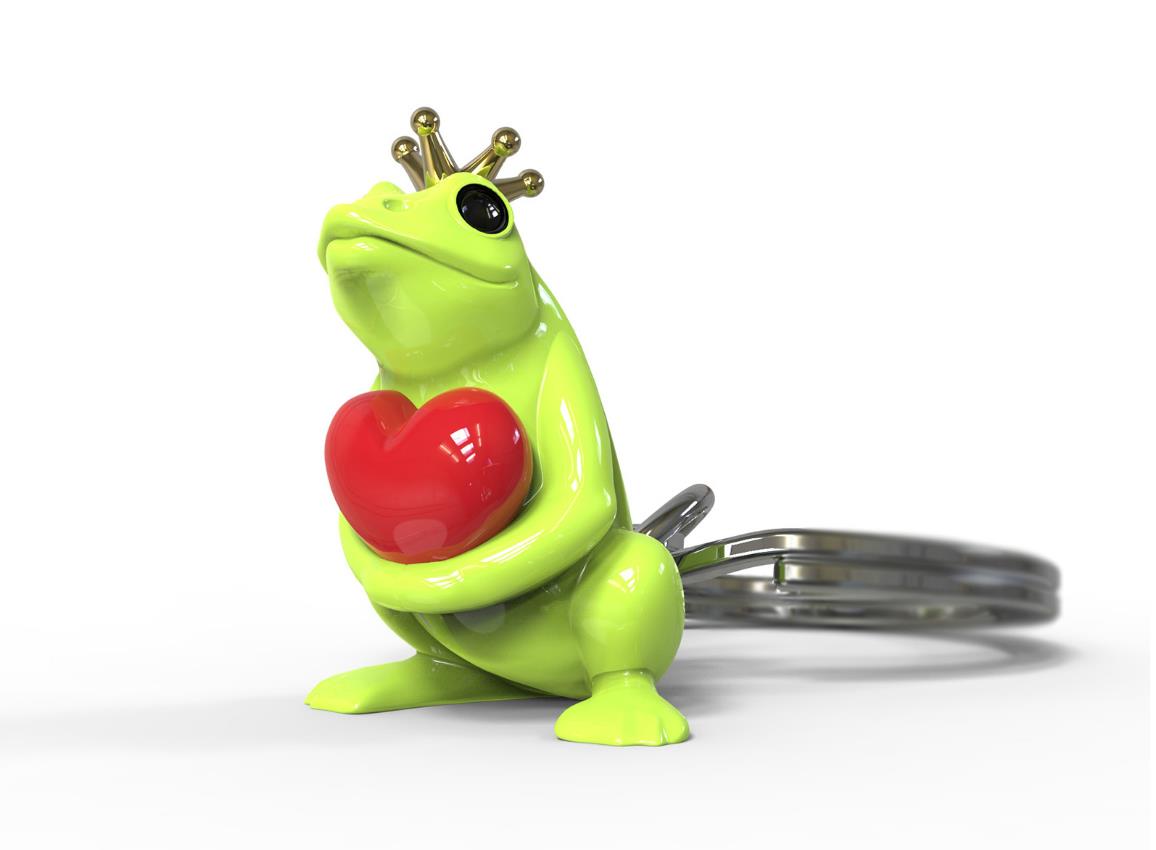 Μπρελόκ σε σχήμα βατράχου που κρατάει μια κόκκινη καρδιά. Ιδανικό για πρίγκιπες και πριγκίπισσες.